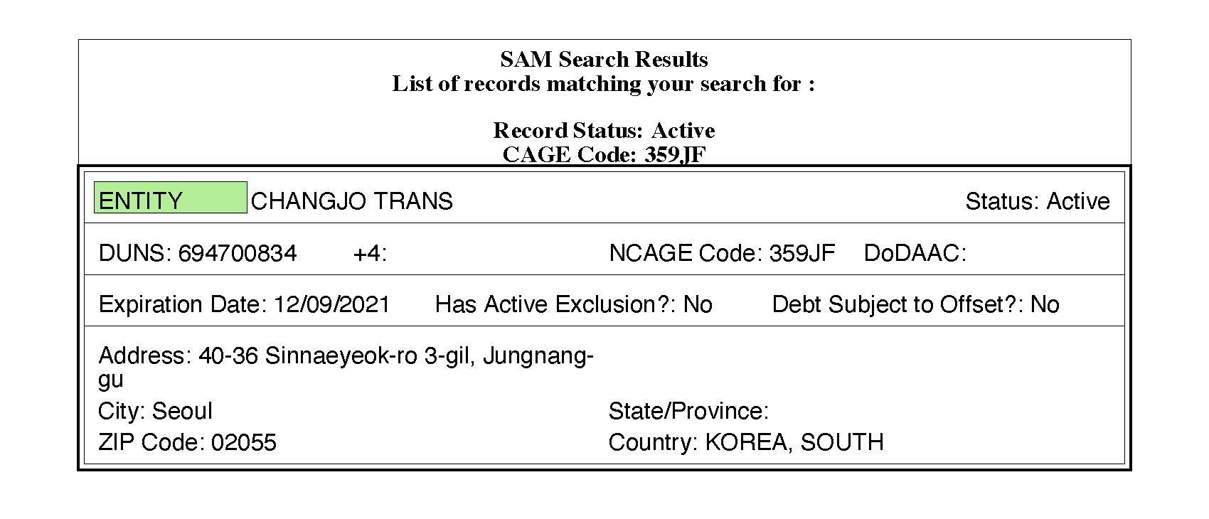 미국방부 이전업체 등록증 사진 입니다.